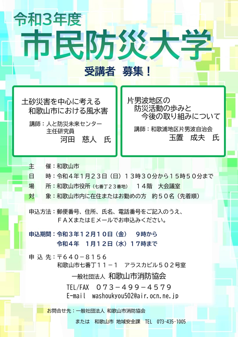 【中止】令和3年度市民防災大学講座(公開講座)の中止について