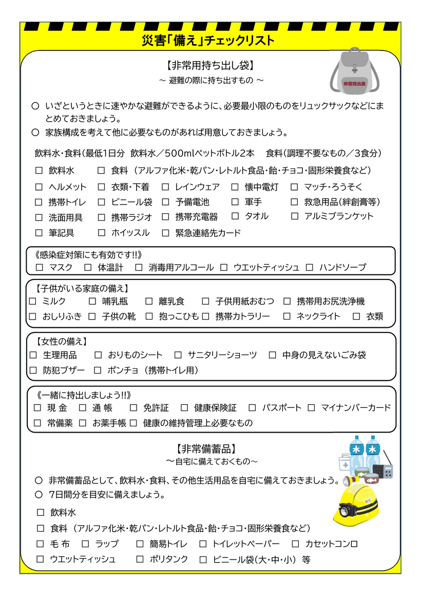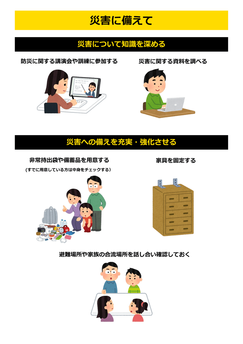 ご家庭、地域でできる「防災」について、この機会に話し合ってみましょう。