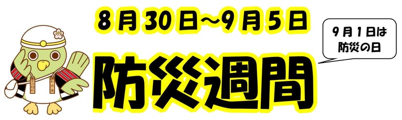 防災の日の9月1日を含む8月30日~9月5日の一週間は防災週間です。