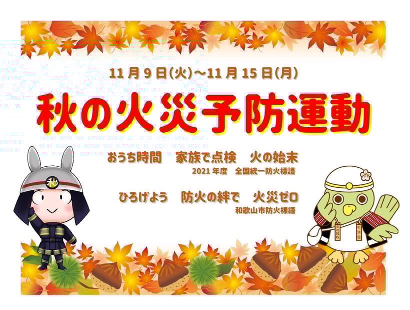 秋の火災予防運動のスタートに先立ち、11月7日(日)午前11時00分から、和歌山マリーナシティで「秋の火災予防運動スタートキャンペーン」が開催されます!