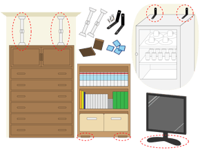 地震の際に、タンス等の重い家具の下敷きになって命を落とした方がいます。また、倒れた家具で避難経路を閉ざされてしまう等、その後の避難に大きく影響を及ぼす場合もあります。