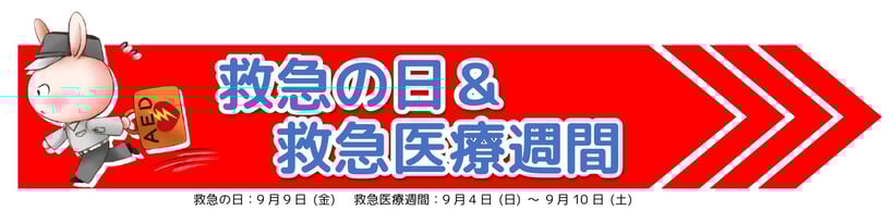 国民の救急業務・救急医療に対する正しい理解と認識を深め、救急医療関係者の意識の高揚を図ることを目的に、毎年9月9日を「救急の日」、救急の日を含む日曜から土曜までの一週間を「救急医療週間」と定めています。