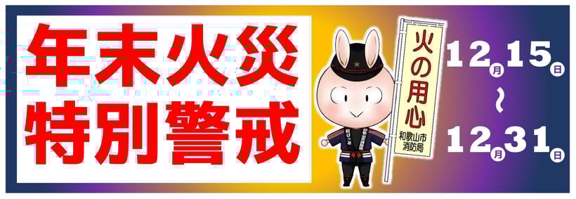 12月15日(金)~12月31日(日)の期間、和歌山市消防局により「年末火災特別警戒」が実施されます。